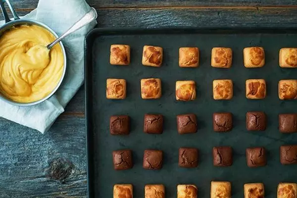 「ベイカーズカスタード」は、カスタードクリームをクッキー生地で覆い、キューブ型に焼き上げた焼き菓子。東京発「世界一おいしいカスタードのベイクドスイーツ」を目指す。