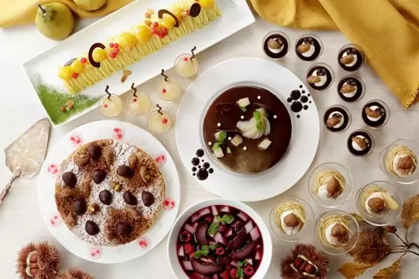 ・スイーツ:アイスクリームモンブラン、マロンと洋梨のショートケーキ、栗と抹茶のモンブラン、マロンのクランブルタルト、フィユテ オ ポワール、ムース オ ショコラポワール、シャンティ ショコラポワール、マロンのパンナコッタ、洋梨のヒアルロンジュレ、洋梨のコンポート ブルギニオン、栗最中他