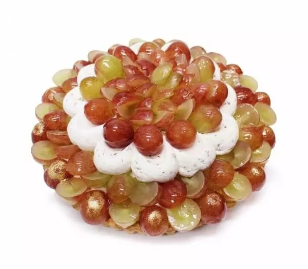 強い甘みと適度な酸味が特徴の「ロザリオロッソ」は初登場の品種。ラム酒がほのかに香るラムレーズンクリームをあわせて、大人な味わいのケーキとして提案する。また、みずみずしく爽やかな甘みの「富士山の彩」を用いたケーキは、ライムクリームと合わせてフロマージュブランのベースに飾った、秋の味覚をすっきりと味わえる一品だ。