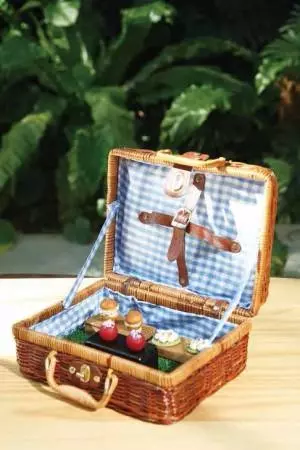 メニューは、ランチ2コースとディナー2コースを用意。全コースに共通している「エネコ東京」最初のおもてなしは、「ピクニック」と呼ばれるサービスだ。レストランのエントランスを入ってすぐのスペースで、食前酒と一口料理の並ぶバスケットを提供する。ダイニングへと入り食事を始める前の、リラックスした楽しいひと時を演出する。