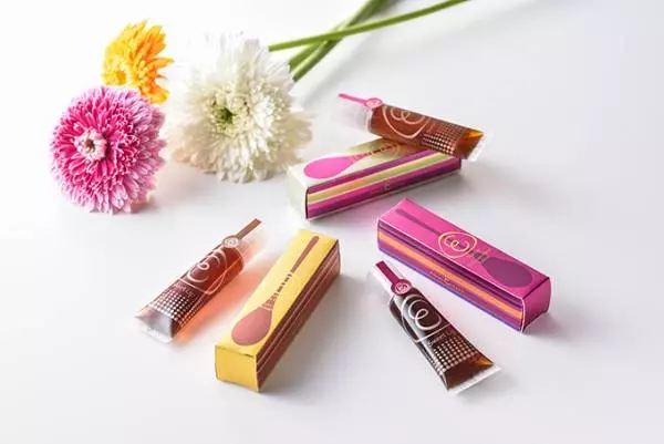 「あめやえいたろう」の人気商品「スイートリップ」は、リップグロスのようなチューブ状のパッケージに入った有平糖ベースのみつあめ。有平糖を高温で煮詰めることによって生まれる香ばしい香りと、着色料・香料不使用の美しいあめ色が特徴だ。