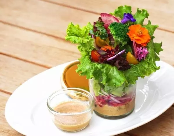 「びんむすめギャラリーカフェ」では、”ジャースイーツ”や”ジャーサラダ”など、ガラスびん入ったフード・ドリンクを50種類以上展開する。ガラスびんに層を成す鮮やかな野菜やスイーツは、つい写真に撮りたくなる可愛さ。目でも舌でも楽しみながら、たっぷり野菜がとれるのも嬉しい。