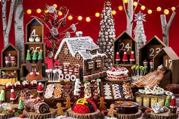 期間中はジンジャーブレッドハウスを取り囲むように、約35種類の華やかなデザートを用意。世界各国のクリスマススイーツが味わえる。