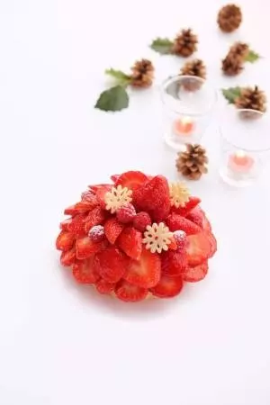 2017年のクリスマスは、真っ赤なハート型をしたロマンチックなケーキ、まるでイルミネーションで輝く街のように艶やかで色とりどりのフルーツをのせたケーキ、そして「あまおう」をお城のように盛ったケーキが登場する。