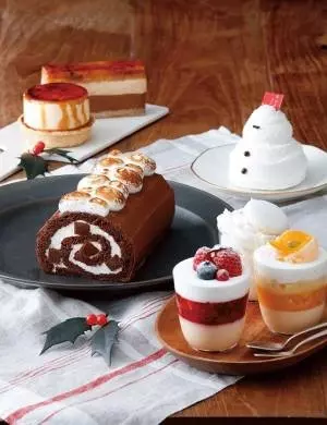 パティスリー キハチの各店舗で、2017年11月1日(水)より雪だるま型のスイーツやクリスマスカラーで彩られた美しいグラスデザートなど、新作のスイーツ5種含めた6種のウィンタースイーツが登場。毎年人気の「生チョコロール」は、一足早く10月30日(月)から発売される。