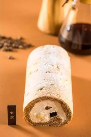 日本橋三越本店や銀座三越店で展開される東京のご当地ロールは「カフェショコラロール」。コーヒークリームにスパイスを効かせたガナッシュ、カスタードをカフェモカアーモンド生地で包み込んだ都会的な1本だ。