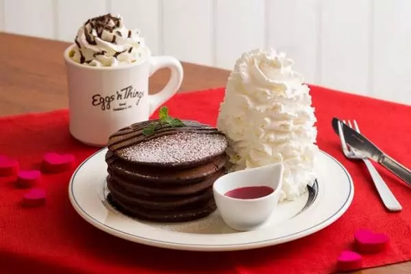 エッグスンシングス(Eggs ’n Things)からバレンタイン限定パンケーキ&ドリンクが登場。2018年2月14日(水)までの期間限定で発売されていたが、好評につき2018年2月28日(水)まで国内全店舗で販売の延長が決定した。