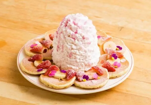 エッグスンシングス原宿店限定「桜とフレッシュフルーツのエワルパンケーキ」桜香るホイップクリーム