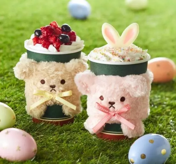 また、季節限定ドリンク「シュトーレンラテ」と合わせて発売し、即日完売となった「ベアフルスリーブ」第2弾が登場。表情ともこもこした質感がキュートな「ベアフルスリーブ」を、春らしいパステルカラーにアップデートしている。