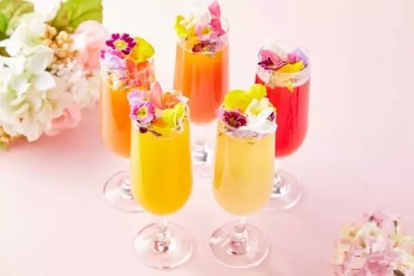 花ビールは、カラフルな見た目と、甘く爽やかな味わいが楽しめる、春にぴったりなビアカクテル。日本酒の蔵元が造った梅酒や果実酒と、ビールをミックスした、飲みやすいビールだ。今回開催される「花ビールフェア」では、ビールに食用の花を飾り、味だけでなく春を感じる見た目もポイントの花ビール5種類が登場する。