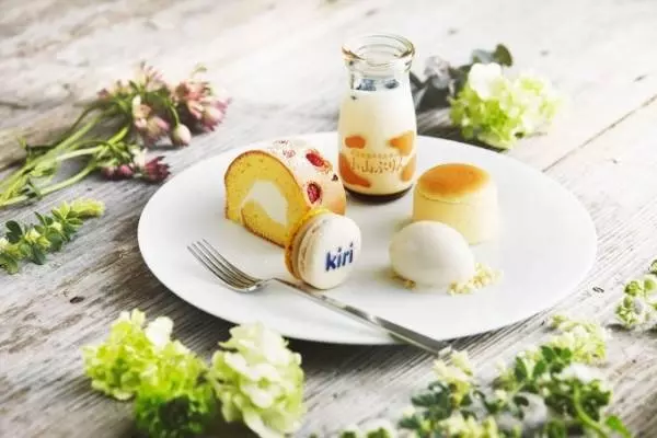 プレートは、クリームチーズをベースにマスカルポーネチーズやブルーベリーなどをミックスした「小山ぷりん kiri&ヨーグルトブルーベリ」や、ミルキーな「キリ クリームチーズ」とスポンジ生地に混ぜたフランボワーズの相性抜群な「赤い果実のkiriロール」、「キリ クリームチーズ」のコク、味、酸味をそのまま再現した「kiriクリームチーズアイス」など、全5種類のスイーツを同時に楽しめる内容となっている。