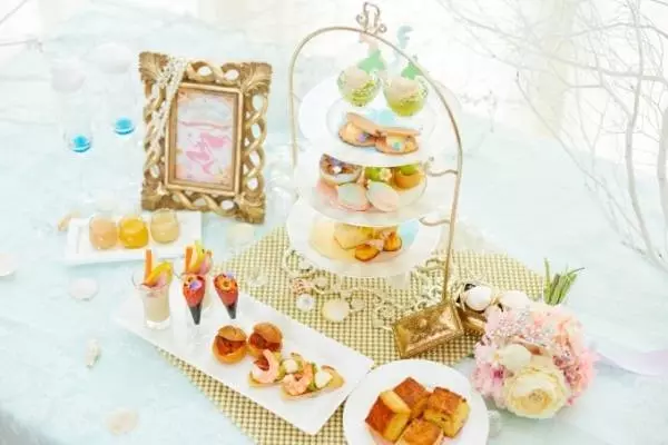 『人魚姫』テーマのアフタヌーンティー、青いスパークリングワインや"真珠貝"モチーフのクッキーなど