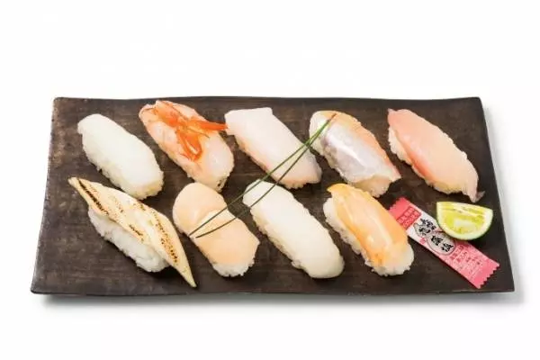 築地 竹若の「塩にぎり」。新鮮な魚を使用した寿司を、藻塩とすだちでさっぱりと味わうグランスタ限定の寿司弁当だ。