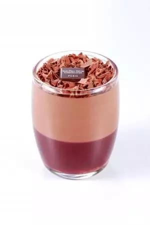 メゾン30周年という記念すべき年に誕生した、3種のベリーをあわせたジュレとローリエ風味のガナッシュをビターチョコレートでコーティングしたボンボン ショコラ「トラント」。「トラント コレクション」では、その特別なボンボン ショコラをヴェリーヌ、マカロン、ショコラ ショで表現した。