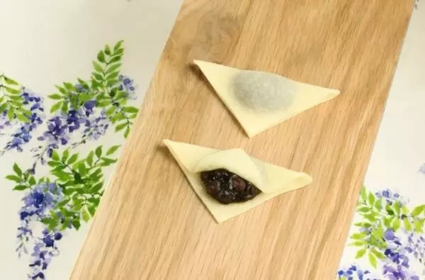 くるみつぶあんを入れた4月のおたべに次ぐ、5月のおたべ「早苗月(さなえづき)」は、ほうじ茶あんを包んだおたべスイーツ。芳醇なほうじ茶の香りとすっきりとした餡の甘さを、コシヒカリ本来の風味を感じる生八つ橋と共に味わうことができる。