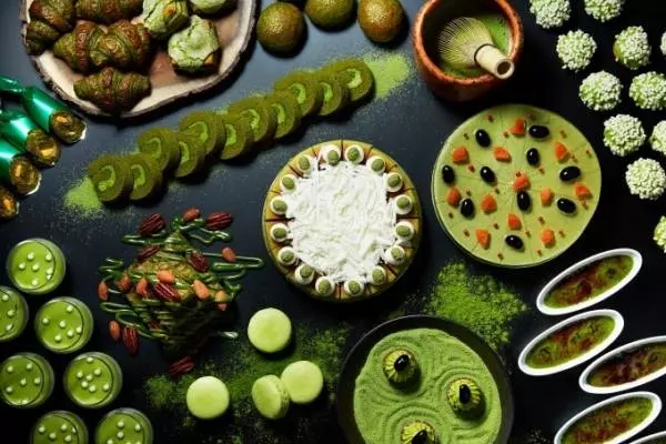 スイーツの他にも、抹茶を練り込んだ食パンで作ったロールサンドイッチ、ホタテとブロッコリーの抹茶のピッツァといったユニークな洋食メニューや、抹茶豆腐、茶そばなどの和食も用意している。抹茶のソフトクリームに、フルーツや白玉、小倉あんなどを自由にトッピングできる「和風パフェのメイキングコーナー」や、各テーブルに設置される抹茶を溶かしたホワイトチョコレートフォンデュセットにも注目だ。