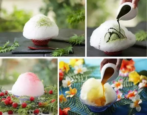 「和かき氷」「フルーツかき氷」は、モコモコのわたあめに特製ソースを注ぐと、まるで雪が溶けていくように、中からふわふわな練乳氷が出てくる特徴的なかき氷となっている。見た目も味も楽しめる、夏にぴったりの涼しげなスイーツだ。