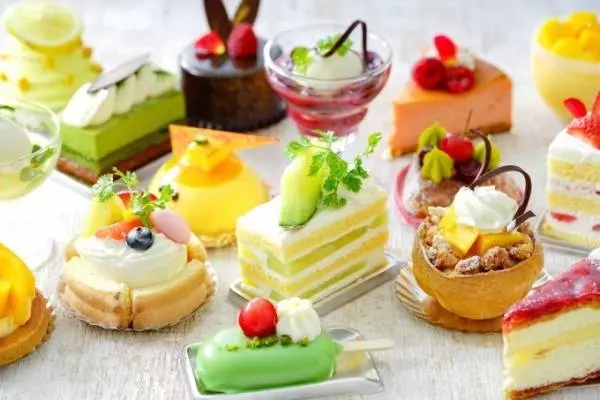 チェリーデニッシュ、メロンのショートケーキ、マンゴーシュー、チェリーバー、マンゴーローズ、ラズベリーベイクドケーキ、レモンブラン、チェリージュビレ、メロンスープとバニラアイス、フルーツシャルロット、エキゾチックムース、マンゴープリン