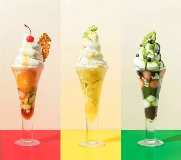 グロリアスチェーンカフェ心斎橋の濃厚「クリームチーズソフト」パフェ、レモン・プリン・抹茶と合わせて