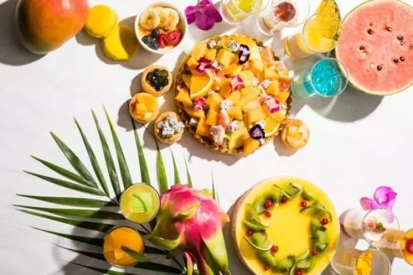 約30種類のフルーツを使った「スイーツビュッフェ ~桃のパフェ付~」は、ホテルメトロポリタンの最上階からの景色と共に、夏にぴったりなスイーツを楽しめるスイーツビュッフェ。20種類の食べ放題スイーツは、マンゴーやドラゴンフルーツのタルトや、パッションフルーツのレアチーズケーキなどが揃う。