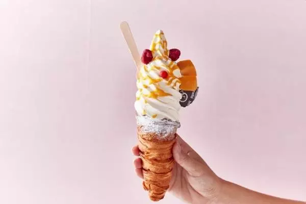 パーク6 パワード バイ ボンドルフィ ボンカフェ(PARK6 Powered by bondolfi boncaffē)からは、デニッシュにカスタードを詰めたイタリア伝統菓子"アラゴスタ"にソフトクリームとフルーツをのせたボリューミーな「アラゴスタソフトクリームマンゴーソース」がラインナップ。デニッシュをアイスクリームのコーン部分のように持って食べるスタイルは、ユニークで新しい。