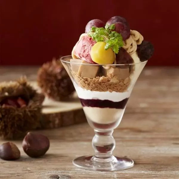 アフタヌーンティー・ティールーム、栗&ブドウ入り秋の新作パフェ - 3日間限定で栗の量が3倍に