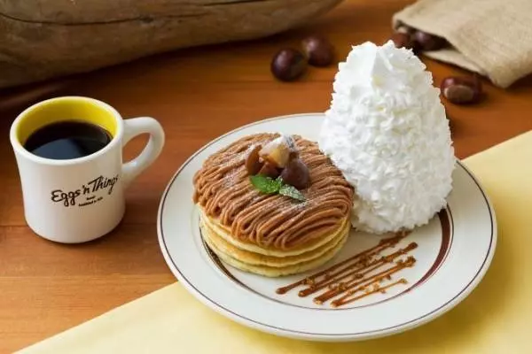 エッグスンシングス(Eggs ’n Things)から期間限定「モンブランパンケーキ」が登場。2018年9月3日(月)から10月14日(日)まで、全国の店舗で提供される。