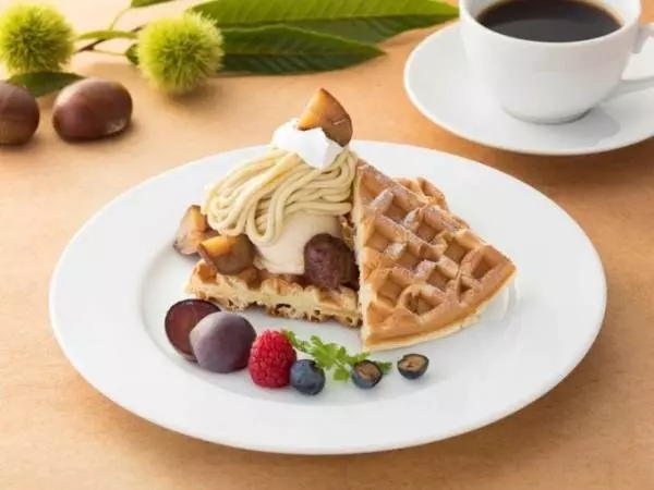 ほかにも、熊本県産の栗を使用したモンブランクリーム&モロゾフのチョコレートムースを合わせた「マロンパフェ」や、同店人気のアーモンドワッフルに、熊本県産の栗使用のモンブランクリームとバニラアイス、渋皮マロンを添えた「モンブランクリームのデザートワッフル」を提供。また旬の甘い安納芋の密漬けをセットにした、デザートセットも販売される。