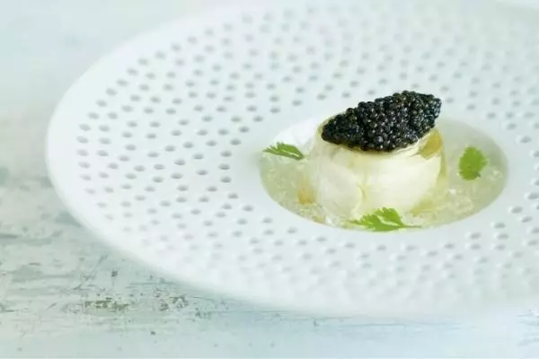 クリスチャン・ディオールが愛したことでも有名な「プルニエ」のメニューも提供。ポーチドエッグをジュレで包み、キャビアを惜しげもなく盛りつけた逸品だ。