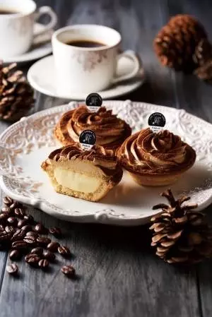 「ティラミス」は、パブロお馴染みのサクサクのチーズタルトを、その名の通り“ティラミス風”にアレンジした期間限定メニュー。チーズタルトの中心には、たっぷりのコーヒーホイップクリームを絞り、その上にコーヒーパウダーを重ねた。ほろ苦いコーヒーホイップクリームと、コク深いココアパウダーが絶妙に絡み合う一品となっている。