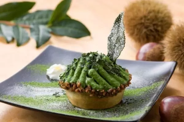 福寿園による京都の宇治茶カフェ「抹茶の茶畑モンブラン」香り高い宇治抹茶入りマロンペースト