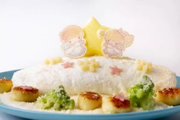 サンリオ「いちご新聞」とのコラボレーションに続く、今回は“キキ&ララ”の愛称で親しまれているサンリオ「リトルツインスターズ」とタッグを組む。キャラクターの世界観を活かした、夢いっぱいの空間でキュートなスイーツやフードメニューが提供される。