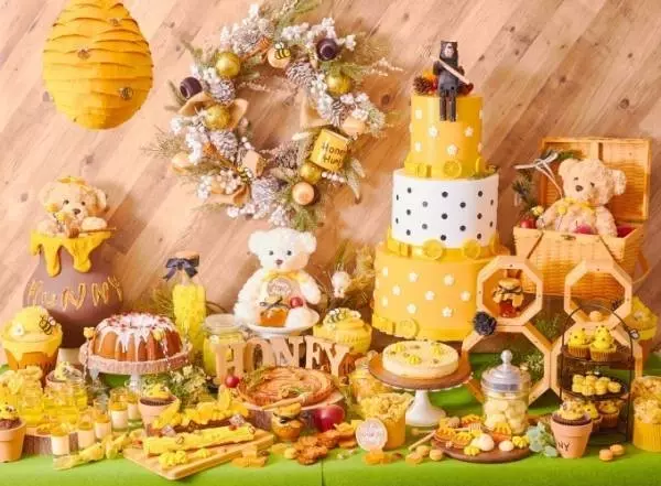 会場には、ハチの巣模様の「ハチの巣チーズケーキ」や鮮やかなイエローカラーの「はちみつロールケーキ」、優しいはちみつの味わいが広がる「チョコレートファウンテン」など、ハニースイーツを多数用意。