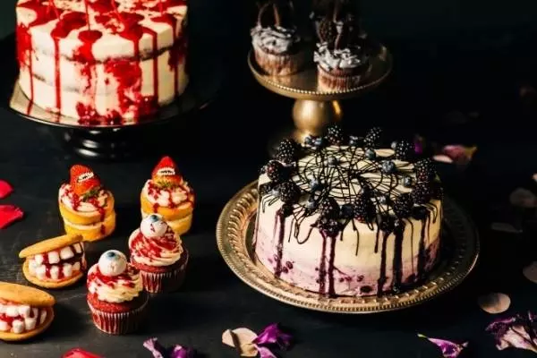 ほかにも、ケーキから血が滴っているかのように、ラズベリーソースをたっぷりとかけた「レッドベルベットホールケーキ」や、苺がモンスターに変身した様子を表現した「ヴィクトリアカップケーキ」など、思わず写真に収めたくなるスイーツの数々が店頭を彩る。