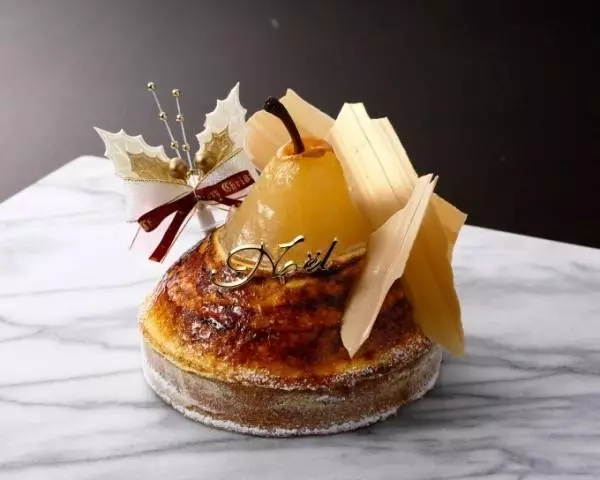 2018年は、華やかなデコレーションを施した全3種類のクリスマスケーキを用意。中でも注目は、幻の洋梨とも呼ばれる希少価値の高い“ル レクチェ”を使用した「ル・レクチェ」。中央の丸ごとコンポートをはじめ、周りのシブースト、クリームにも“ル レクチェ”を使用した贅沢なケーキとなっている。