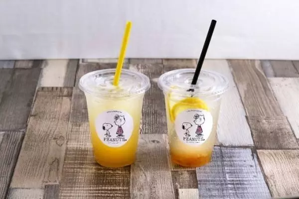 「焼きマシュマロラテ」は、スヌーピーが描かれたマグカップに、ビーグル・スカウト達も頬張った焼きマシュマロをとろりと溢れるほどたくさんのせ、濃厚なチョコレートソースをあしらった。更に、あの有名なルーシーのレモネードスタンドにちなんだ「ルーシーのホームメイドレモネード」も販売される。