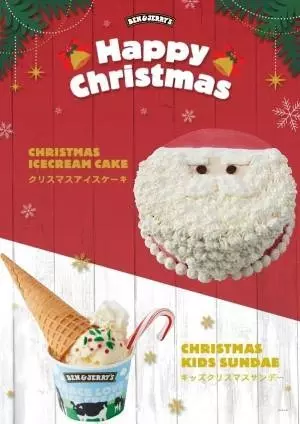 ベン&ジェリーズより、クリスマスアイスケーキが数量限定で登場。2018年11月20日(火)より、ベン&ジェリーズ ららぽーと豊洲店にて予約開始となる。