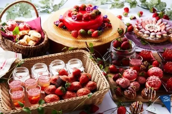 苺ショート/苺シフォン/苺マフィン/苺マンゴームース/ルビーチョコパッション/苺タルト/苺と葡萄のゼリー/苺柚子スフレチーズ/ルビーチョコムース/苺パンナコッタ/苺ライムゼリー/ロールケーキ/苺NYチーズケーキ/苺バニラプリン/苺ミルフィーユ/苺エクレア/苺チョコ羊羹/苺レミントン/マカロン/苺スープ/苺大福/苺のフィナンシェ/パートドフリュイ/カラースプーンチョコ/フリーズドライ苺チョコ/苺クッキー/苺のギモーブ/フレッシュ苺(10種)※デザートブッフェのみ/トロペジェンヌ/スコーン/デニッシュ