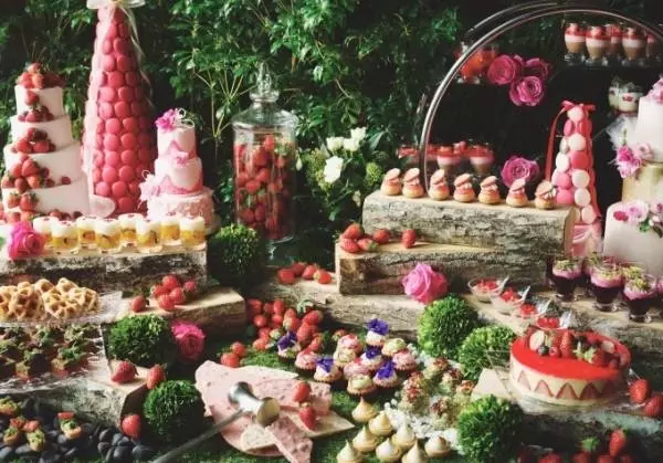 日本産のいちごをふんだんに使用した「いちごスイーツビュッフェ」のテーマは、イギリス・フランス・ベルギー。高級食材を使用したスイーツやオリジナリティ溢れるセイボリーなど、各国のお菓子や食文化から着想を得たメニューが並ぶ。