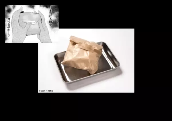前回人気だった「カネキの隻眼カレー」が再び登場。さらに、今回はカネキのマスクをイメージした器に入った、ノンアルコールスパークリングを合わせて注文することができる。リアルに再現されたマスクの器は、ドリンクを飲むたび、まるでマスクを装着しているように見せてくれる。ついつい写真に撮りたくなるユニークな仕掛けが満載だ。