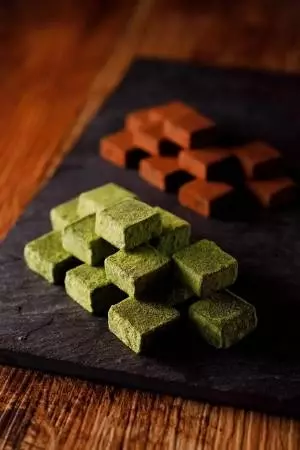 カフェ「レックコート」がバレンタインに展開する生チョコレートは、毎年人気のひと品。今回は、オレンジの香りを利かせた生チョコレートに加えて、京都の老舗茶舗、 「一保堂茶舗」の抹茶を使った抹茶味が仲間入り。お茶の風味がしっかり効いたほろ苦いチョコレートは、甘いものが苦手な彼にもぴったり。