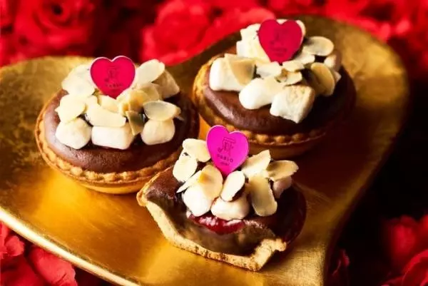 「焼きマシュマロ♡チョコレート」は、口当たりなめらかなチョコレートチーズタルトに、爽やかな酸味のフランボワーズコンフィチュールと、優しい甘さのマシュマロをのせて焼き上げた。さらに、その上から濃厚なチョコレートソースとカリカリ食感が楽しいローストスライスアーモンドをたっぷりとあしらっている。仕上げにハートピックを飾った、バレンタインだけの贅沢なパブロミニだ。