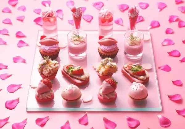 「桜バニティピンク・アフタヌーンティー」では、春らしい“ピンク”の世界観を表現。“第4のチョコレート”と称されるルビーチョコレートや、香り高い桜、旬のジューシーな苺を組み合わせた、ロマンチックなピンク色のメニューが提供される。