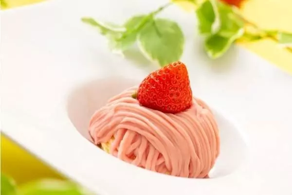 「春のお花畑」をテーマにしたいちごスイーツブッフェは、旬の苺を使用したかわいらしいスイーツを20種以上用意。あまおう苺を一粒乗せた爽やかな甘さの「あまおう苺のモンブラン」から始まり、ショートケーキ、苺のババロアといった苺のスイーツがずらりと並ぶ。