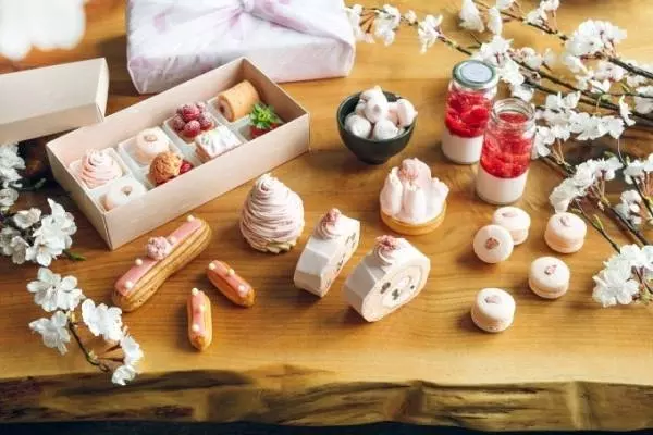アンダーズ 東京の「さくらスイーツ」には、やさしい桜色のピンク色のクリームや花びらで飾られた華やかなスイーツが勢揃い。