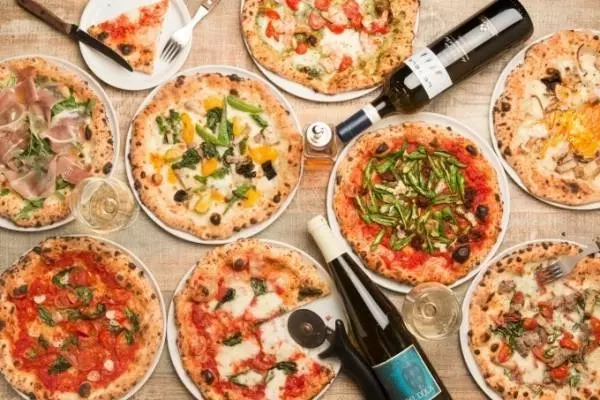 「サンデーズ ベイク 569」の薪窯で焼き上げる本格ナポリピッツァは、定番のマルゲリータなど約15種類もの豊富なラインナップ。店内に拡がる香ばしい香りと、外はカリッと中はモチモチの食感がたまらないナポリピッツァは、ランチとディナーの両方で楽しめる。