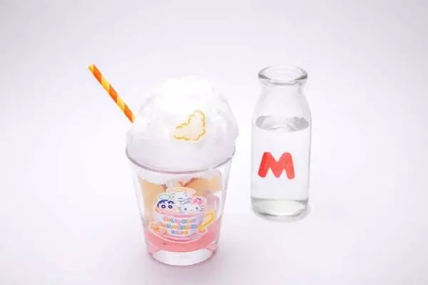 愛犬シロのお尻をイメージした「ハローキティとシロのクリームたっぷり もふもふチーズスフレ」は、ストロベリーチーズスフレを真っ白で柔らかいクリームで包んだスイーツ。また、ピンクや緑などかわいいパステルカラーのヨーグルトドリンクに、しんちゃんが大好きなお菓子“チョコビ”をトッピングした「ハローキティとワニ山さんのカラフルヨーグルトドリンク」などもラインナップする。