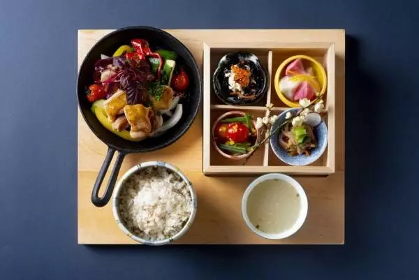 ランチ、ディナーともにおすすめなのが、短時間で焼き上げることで食材が持っている旨みをぎゅっと閉じこめた鉄板焼きメニュー。“体の中からキレイになる”をコンセプトに吟味された食材を使った「鶏つやだしご飯」や「滋養健康スープ」がセットなったランチプレートや、3種の名古屋コーチンを野菜で包んで食べるディナーセットなどが用意される。