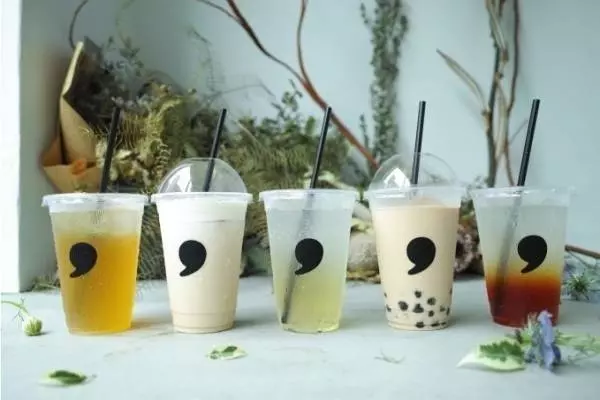 メニューは、コンマブレンド、アッサム、烏龍の3種類から選べる大人のタピオカミルクティーや、ドリンクの上に乗せたミルクフォームの表面をカリカリに焼き上げて香ばしく仕上げた「焦がし黒糖ラテ」、最高品質の宇治抹茶が香る「宇治抹茶ラテ」、自家製のこだわりチーズフォームを使用した各種チーズティーなど、豊富なラインナップが用意されている。