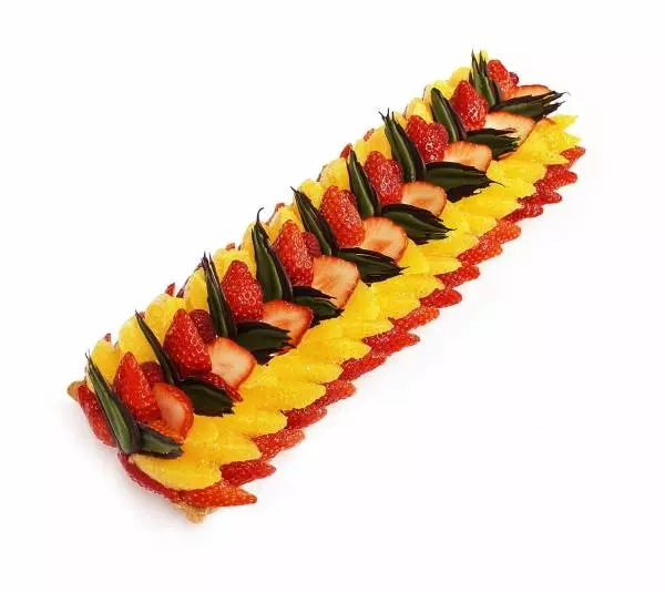 エヴァンゲリオンとのコラボレーションでは、人気キャラクター惣流・アスカ・ラングレーと渚カヲルをイメージ。「アスカ」のケーキ ~いちごとオレンジのケーキ~は、アスカのプラグスーツを想起させる赤を基調としたカラーリング。旬のいちごとオレンジをカスタードのベースにふんだんに飾り、胸元のポイントをチョコレートで、インターフェイス・ヘッドセットをいちごで描き出した。